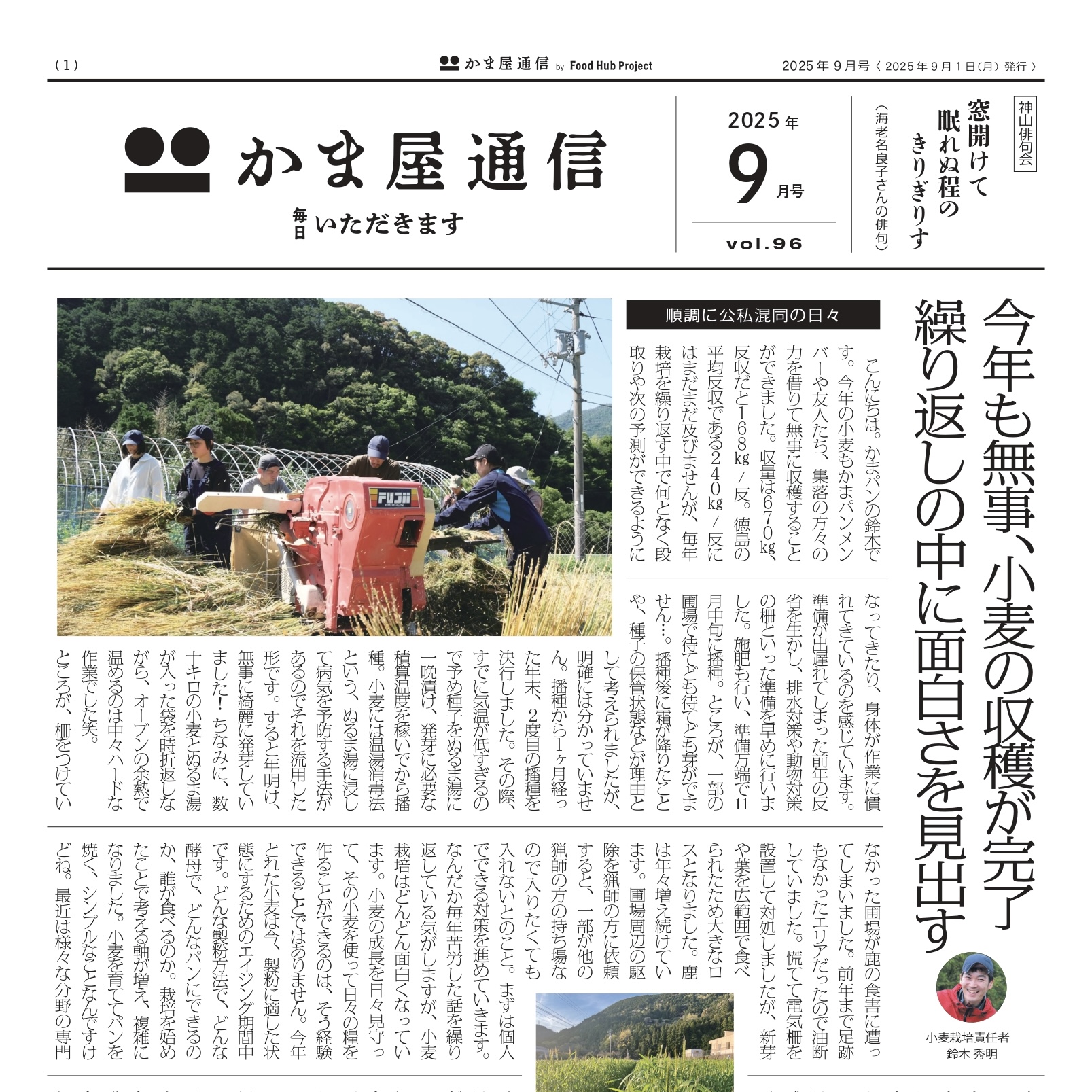 『かま屋通信』2025年9月号|今年も無事、小麦の収穫が完了。繰り返しの中に面白さを見出す